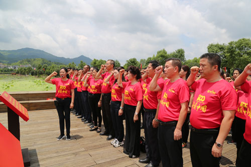 在古田會議舊址,集團黨委書記、劉燕董事長帶領大家重溫入黨誓詞