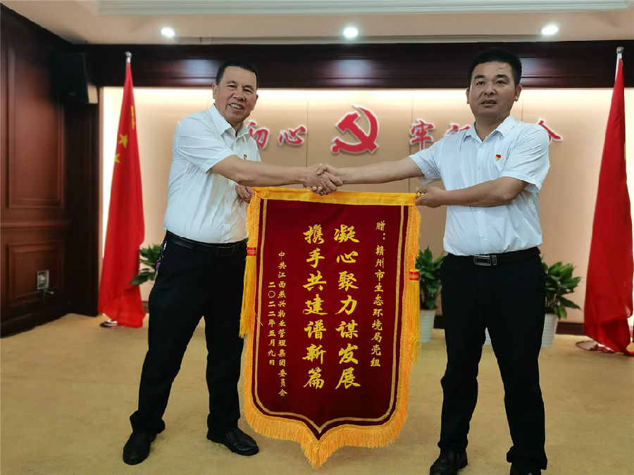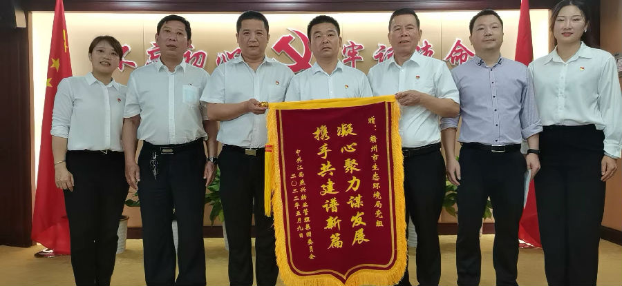生態(tài)環(huán)境局黨組成員鐘副局長接過錦旗,說到:“高質(zhì)量黨建引領(lǐng)企業(yè)高質(zhì)量發(fā)展,我們是共建單位也是業(yè)務(wù)合作單位,攜手抓好黨建共建,力爭在市“三大戰(zhàn)略、八大行動(dòng)”中貢獻(xiàn)更大力量,爭創(chuàng)第一等成績向黨的二十大獻(xiàn)禮”。